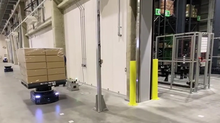 グリッド式AGV(無人搬送車)「TiTra G500」を使った 自動倉庫連携によるパレットの自動搬送システムを ハタノ製作所へ納入