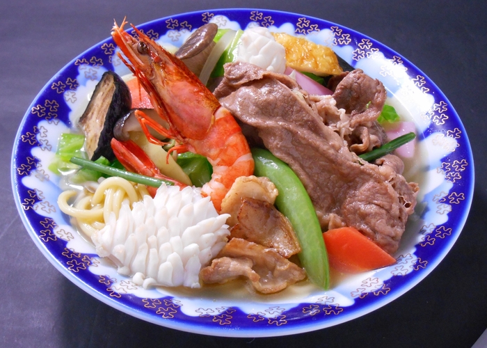 五島の車海老、剣先イカ、ながさき牛のもも肉を使用。素材も味も贅沢な1品。