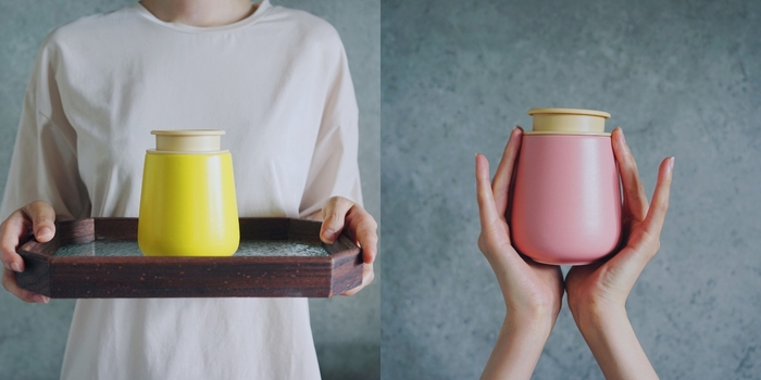 美濃焼技法で作られた磁器の肌はセミマットの質感で、9色の豊富なカラーバリエーション(ダークブラウ ン、オレンジブラウン、イエロー、スノーホワイト、アイボリー、オリーブグレー、ミントブルー、ライラック、サクラピンク)から選べます。「mino雫」は300mlの大容量ながらコンパクトで、かわいいコロンとしたシルエットが特徴です。 その癒しのシルエットと彩りが、日常を北欧モダンな空間に変えてくれます。