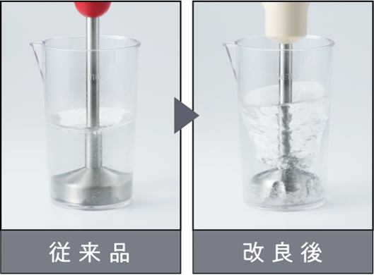ブレードとカバー部の形状を改良することで、従来品と比較してかくはん能力がアップしました。