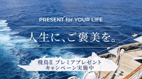郵船クルーズ株式会社(本社:横浜市西区、代表取締役社長:坂本 深)は、2021年3月15日より同年5月10日までの期間、「飛鳥IIのプレミアクルーズ 3日間のペアチケット」を含む素敵な賞品が合計50名様に当たる「飛鳥II プレミアプレゼントキャンペーン」を実施いたします。