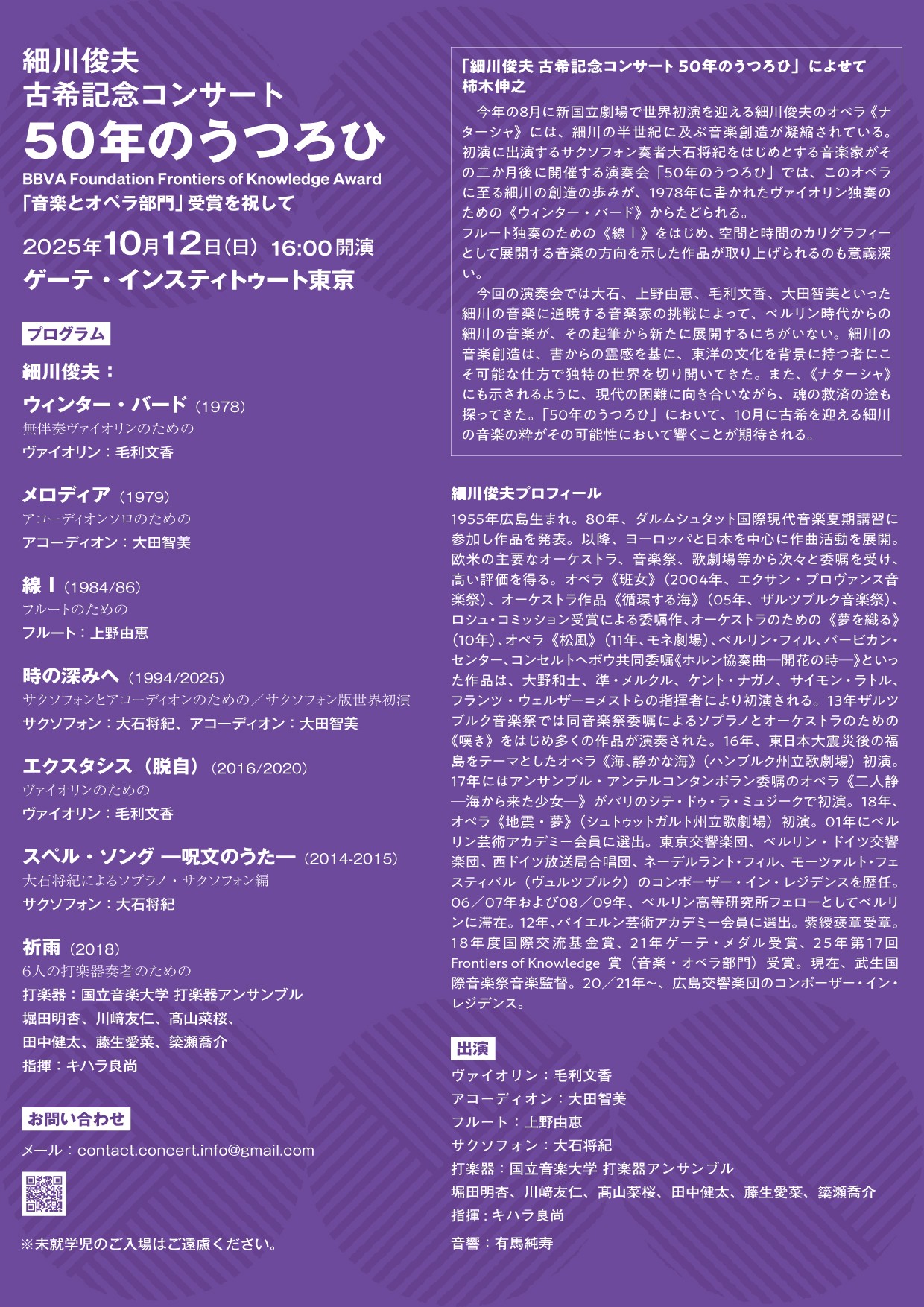 作曲家・細川俊夫の記念演奏会開催 ヴァイオリン・毛利文香、サクソフォン・大石将紀、アコーディオン・大田智美、フルート・上野由恵ほか共演 | NEWSCAST