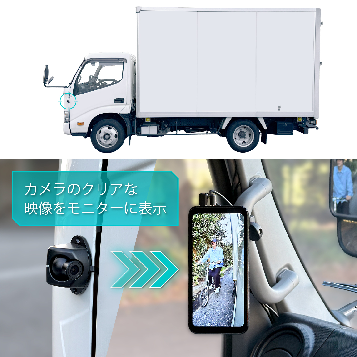 ピラーアシストグリップに簡単取付け! トラック用(DC24V車)のデジタルサイドミラーを新発売 広い視野角の縦型モニターで死角をカバー