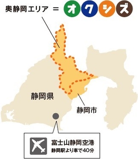 ※「オクシズ」とは:静岡市の中山間地の総称。「奥静岡エリア」の愛称です。区域内には梅ヶ島温泉や井川ダム、南アルプスなど多数の観光資源があり、静岡茶、わさびの栽培が盛んなほか、人の手と心でつくられた作物と加工品の数々、棚田や茶畑といった美しい景観が今も多く残っています。