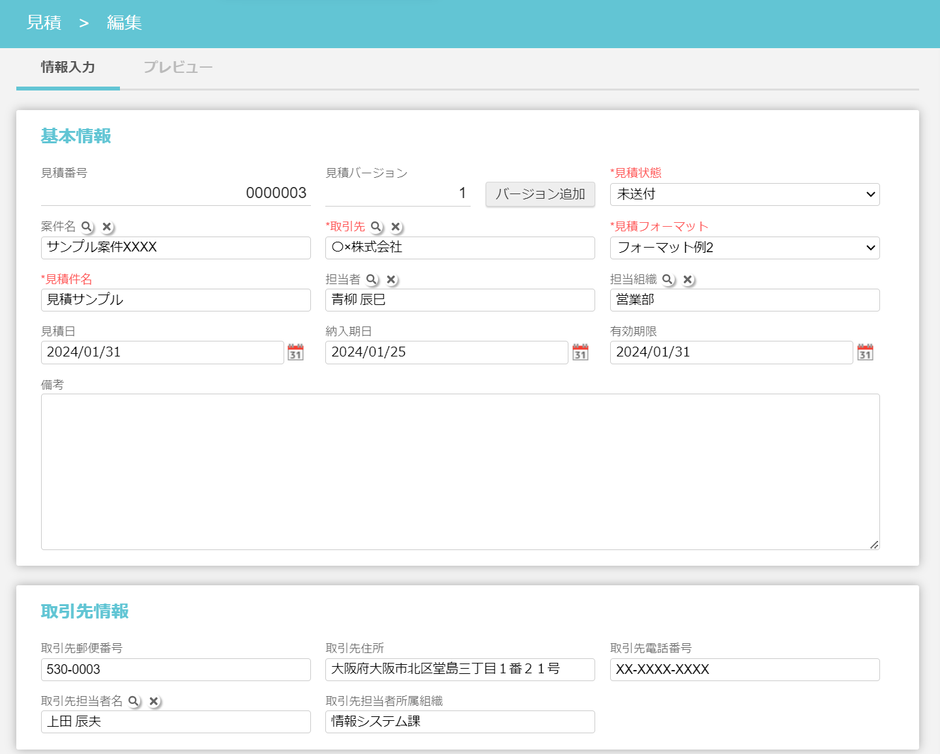 ・営業支援機能で管理する案件や取引先の情報を選択できるため必要事項の入力が省力化できます