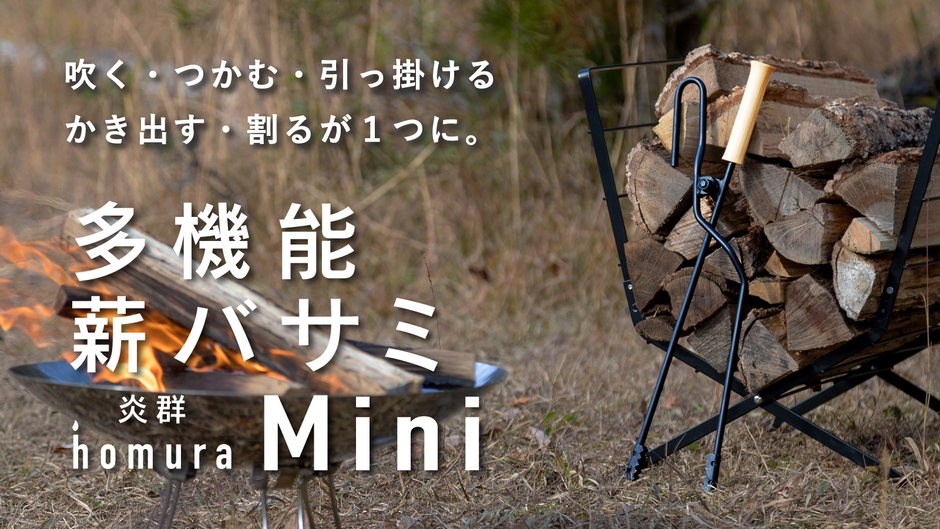 本製品は、2021年4月にMakuakeにて先行予約販売(応援購入者931名、総額9,060,810円、達成率3,020%)を行い、同9月より一般販売を開始している炎群homuraのミニサイズです。手の小さな方、女性キャンパーやお子様まで幅広い方々にお使いいただけるよう、機能はそのままに、小さく軽くなりました。