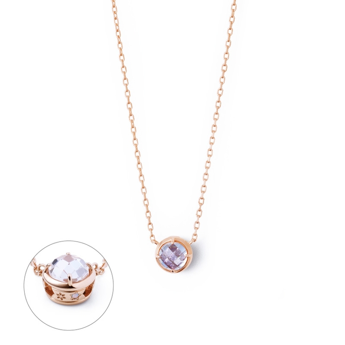 特殊なセッティングにより揺れ続けるピンクカラーのストーンが、ホワイトカラーストーンにやわらかく映し出され、2つのストーンが織りなす幻想的な表情が魅力です。