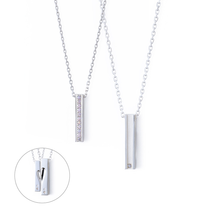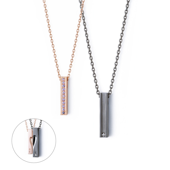シャープなストレートラインが美しいバータイプのペアネックレス。