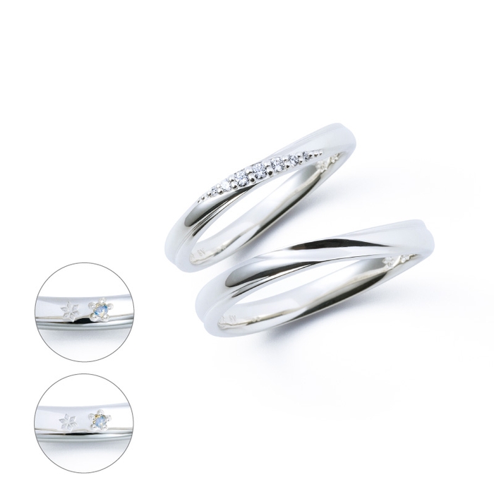 どちらにも、中央に”ふたりの未来がずっと続きますように”との願いを込めダイヤモンドをセット。