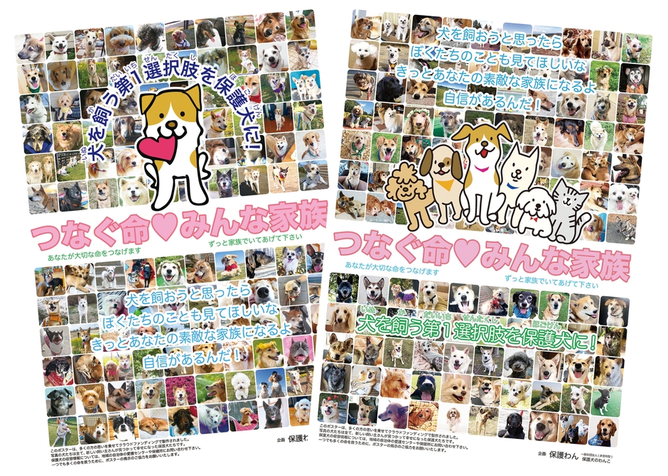 この保護犬啓発ポスターは「全国の小中学校などに命の大切さを伝える保護犬の啓発ポスターを張ろう!」というプロジェクトによって、全国の愛犬家の多くの思いをのせ、クラウドファンディングで資金が作られ、無償のボランティアによって運用されています。