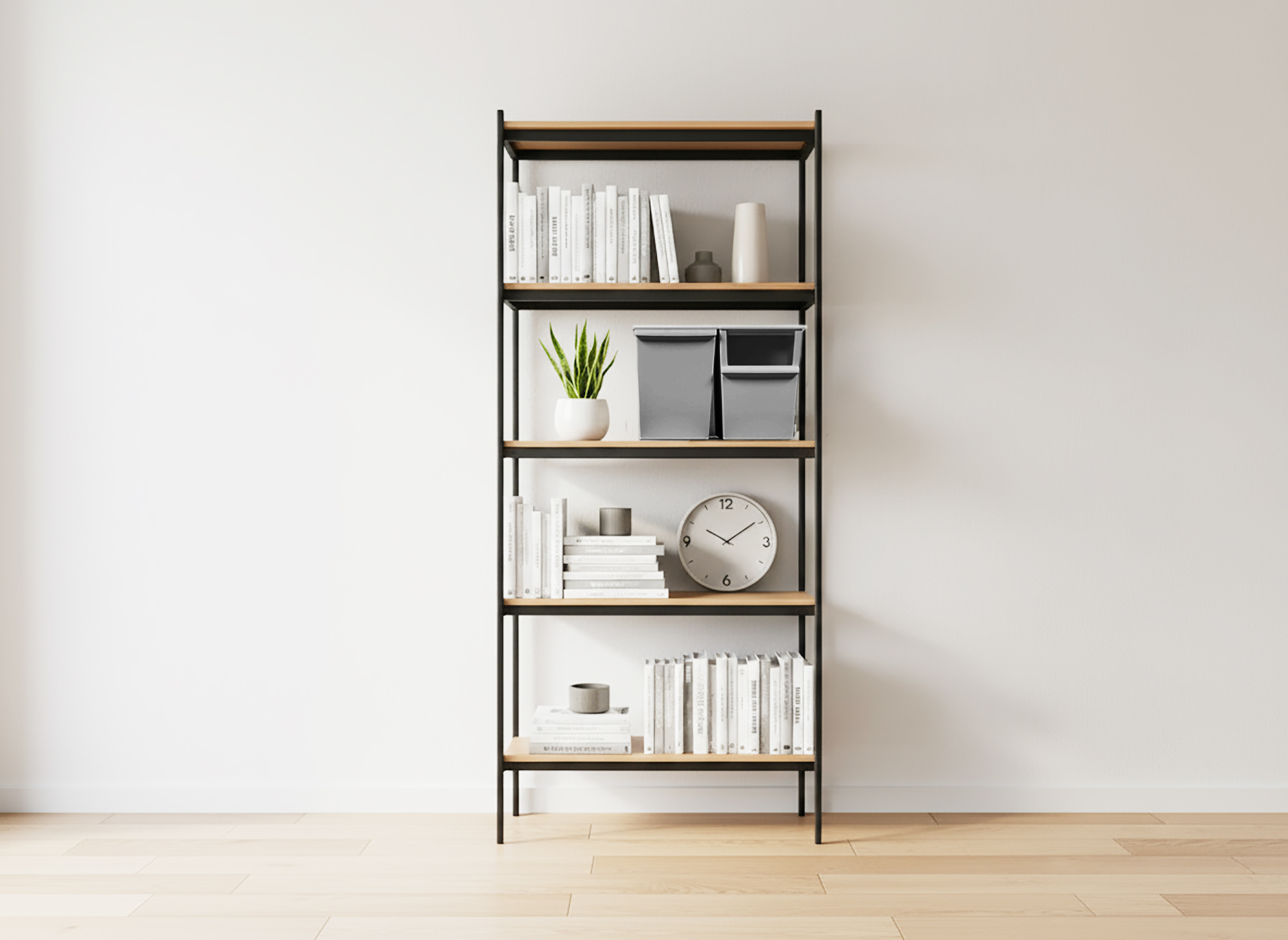 住居空間や生活様式に応じてカスタマイズができるオープンシェルフ。ライクイットの収納用品に合わせたサイズ設計。デザイン性の高い収納用品と組み合わせて使うことで、効率的で美しい“見せる収納”を実現。