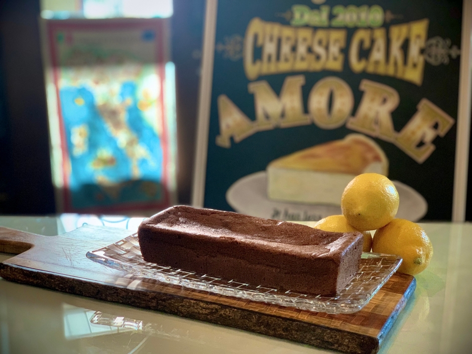 今回のチョコレートテリーヌは、当店の看板メニューである米粉のチーズケーキAmoreをアレンジして、チョコレート味のクリームチーズテリーヌを作りました。クリームチーズの味わいはそのままにして、香りの高いフェアトレードのチョコレートをたっぷりと練り込み、口溶け濃厚な食感に仕上げております。