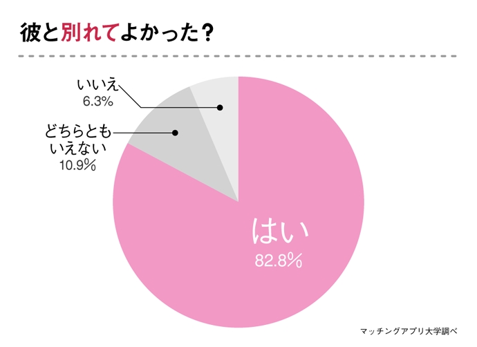 結婚する気がない彼氏と結婚を理由に別れた女性たちに「結婚する気がない彼と別れてよかったと思いますか?」と聞いたところ、なんと80%以上もの女性が「別れてよかった」と回答。「別れなければよかった」と回答した女性は、わずか約6%でした。