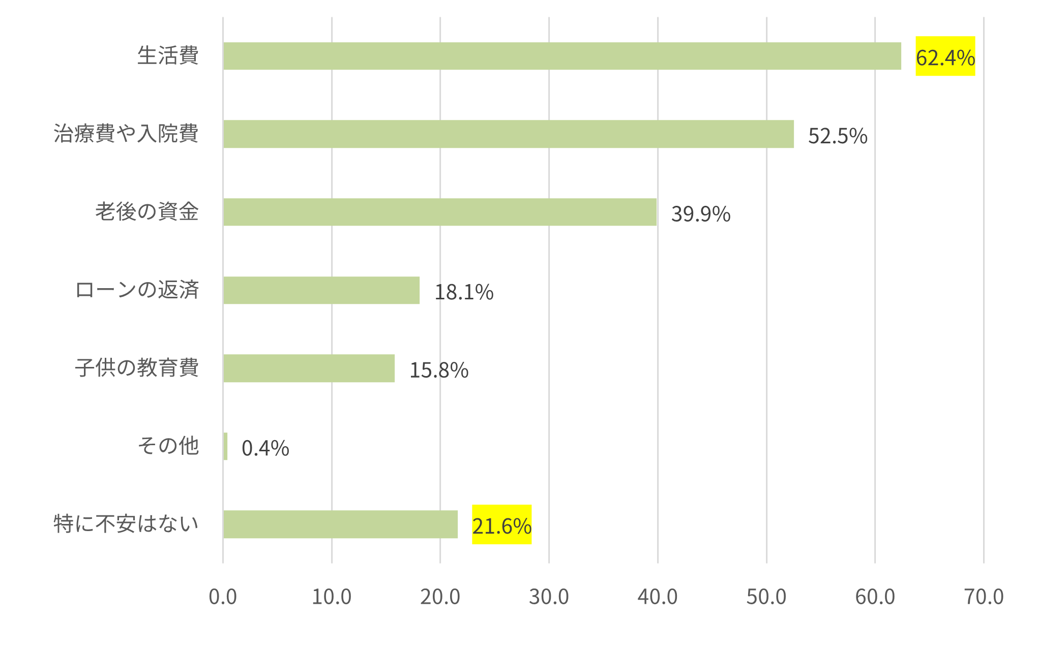 【図7】もしも自分がケガや病気で長期間働けなくなったとき、何に対して不安を感じますか(いくつでも) (n=1,000)