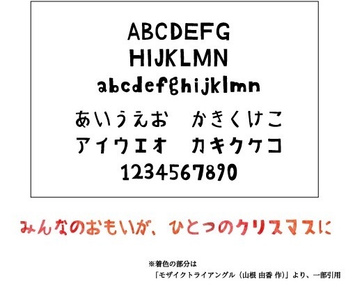 2003年・大阪生まれ。瀬戸さんはいつも元気にモチーフを宣言して、たっぷりの絵の具を使って楽しそうに描きます。鳥や動物を描くのが得意ですが、新しいチャレンジとして「なにわふぉんと」用の文字に鉛筆で一所懸命に挑戦した作品がこちら。今にも動きそうな自由な文字が特徴的です。