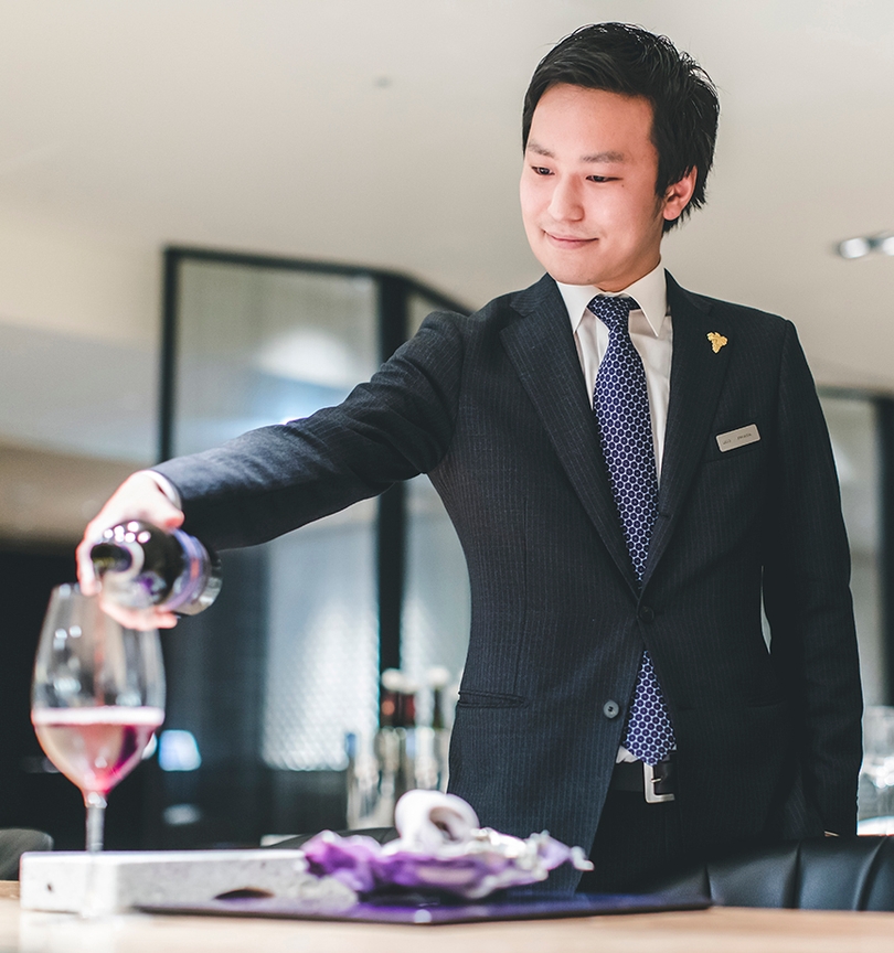 1989年愛知県生まれ。同志社大学に在学中、留学先のニュージーランドでワインに魅了され、4年間ワインの勉強に没頭する。大学卒業後、2014年にソムリエ資格取得。同年京都のワインバー「Cave de K(カーヴ・ド・ケイ)」のソムリエに着任。2019年9月に現職、THE THOUSAND KYOTOシェフ・ソムリエ就任。