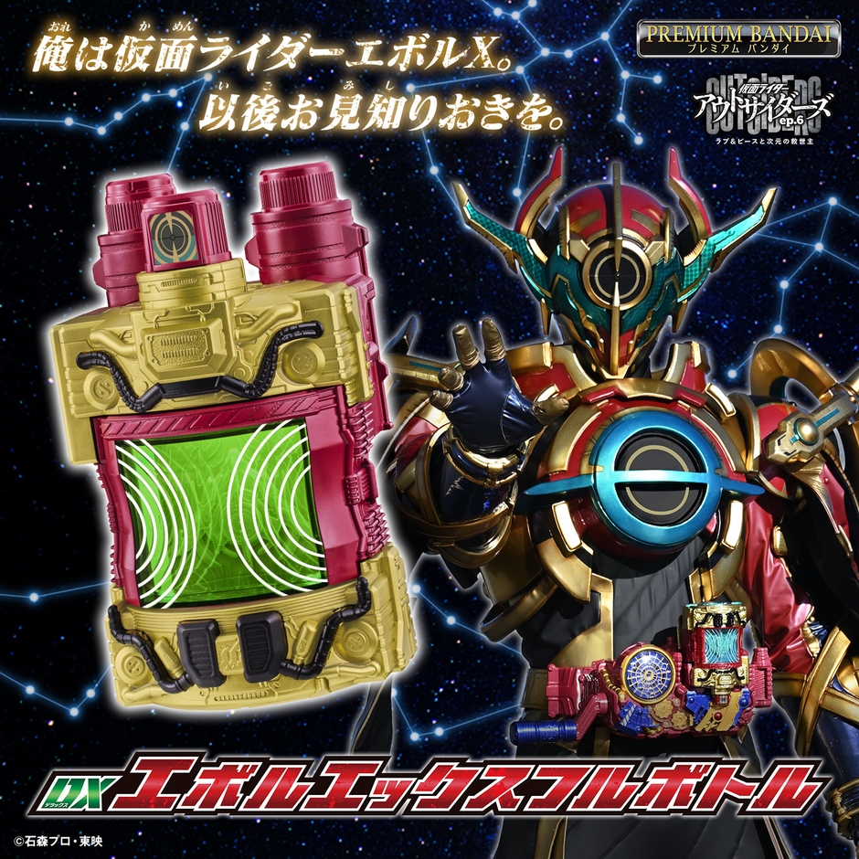 2024年9月29日(日)に東映特撮ファンクラブ( https://tokusatsu-fc.jp/ )にて配信を開始した『仮面ライダーアウトサイダーズ ep.6 ラブ&ピースと次元の救世主』劇中で登場した仮面ライダーエボルXの変身アイテム「エボルエックスフルボトル」を商品化いたします。