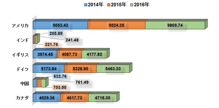 一人当たりの医療費、PPP(米ドル)– 2014-2016年