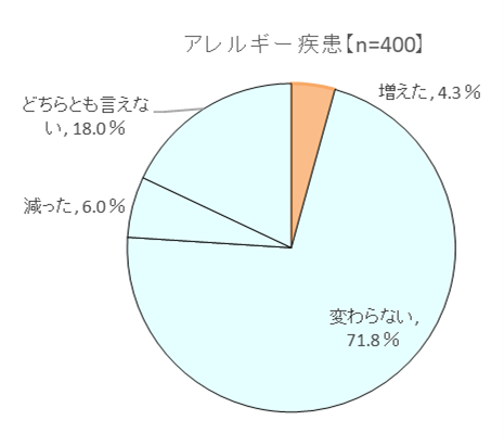 その結果、半数以上の人(53.7%)が何らかのアレルギー疾患があると自覚。また、約3人に1人(32.8%)の人が、コロナ禍以降は「健康管理への関心が高まった」と感じている人がいることが分かりました。
