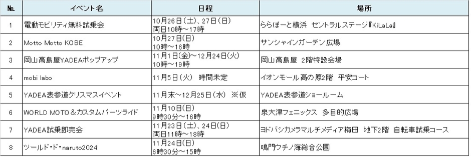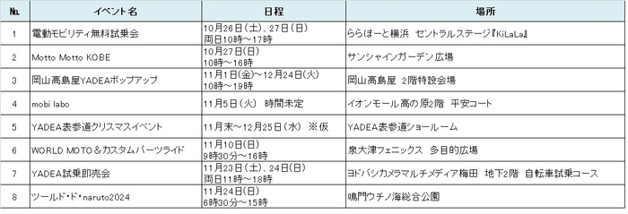 10月以降の安全講習会・試乗関連イベントスケジュール