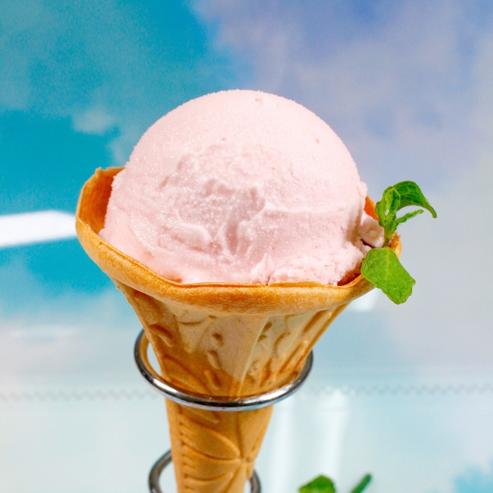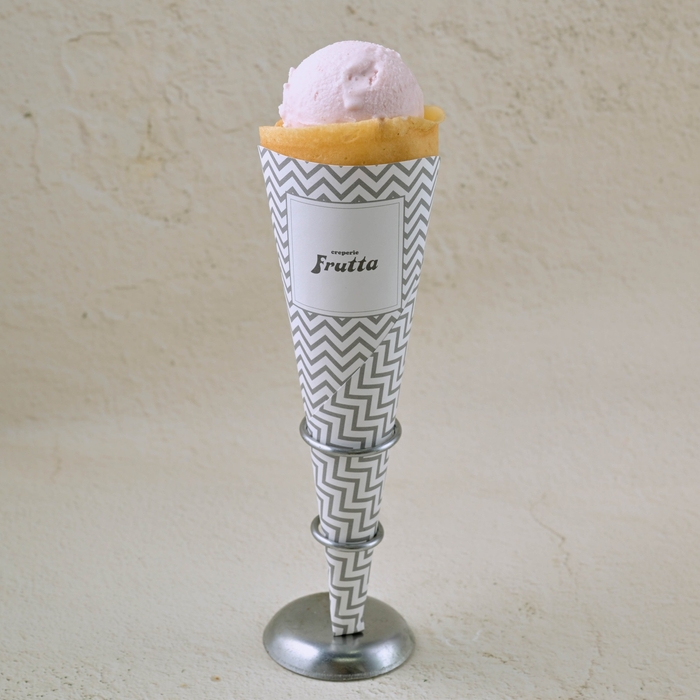 バラの優雅な香りがほんのりと広がる淡いピンク色をしたアイスクレープです。