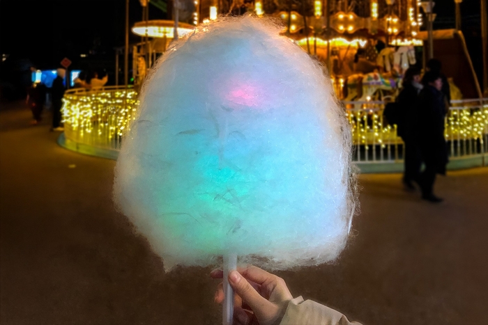 ② 毎年好評の「光るわたあめ」を今年も販売! 今年初登場のバラをモチーフにしたフードも