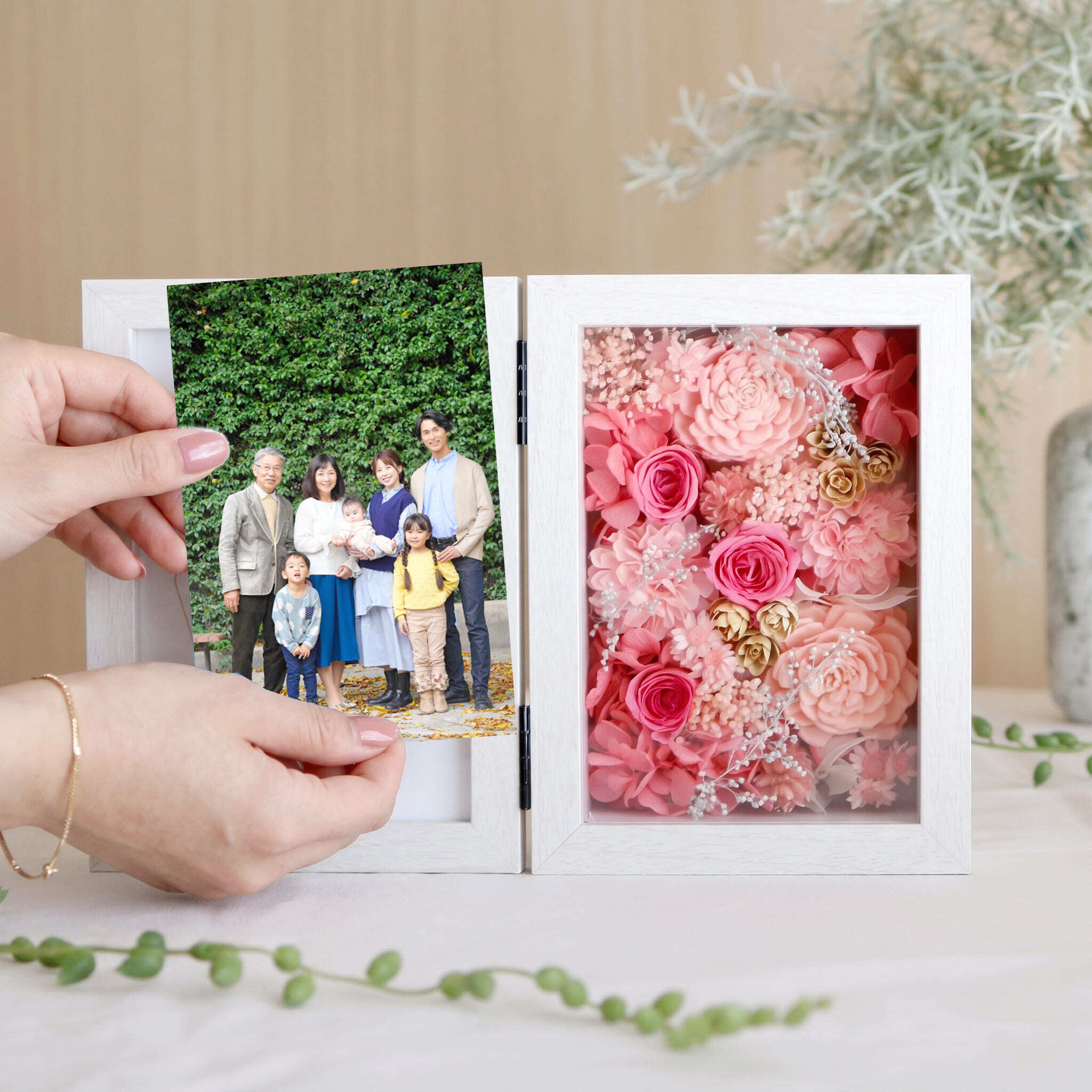 美しいプリザーブドフラワーと、お母さまへの大切な記憶が一緒に飾られたとき、きっとそれだけで言葉にならない「ありがとう」が伝わるはずです。