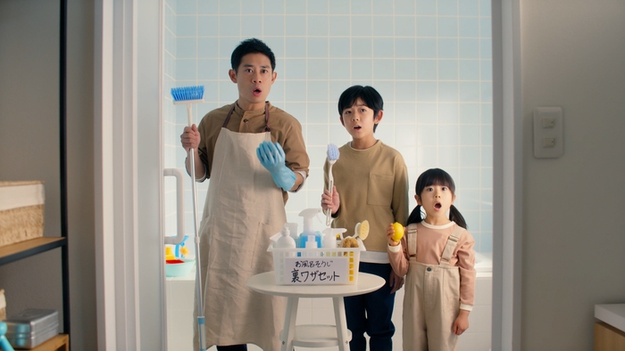 家族みんなで落ちにくい汚れに挑んだり、お掃除の動画撮影をしたりと、家族で楽しみながら掃除を通して快適な住まいづくりにチャレンジする様子を描いています。