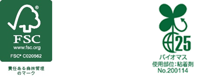 認証マーク FSC認証(左) バイオマスマーク(右)