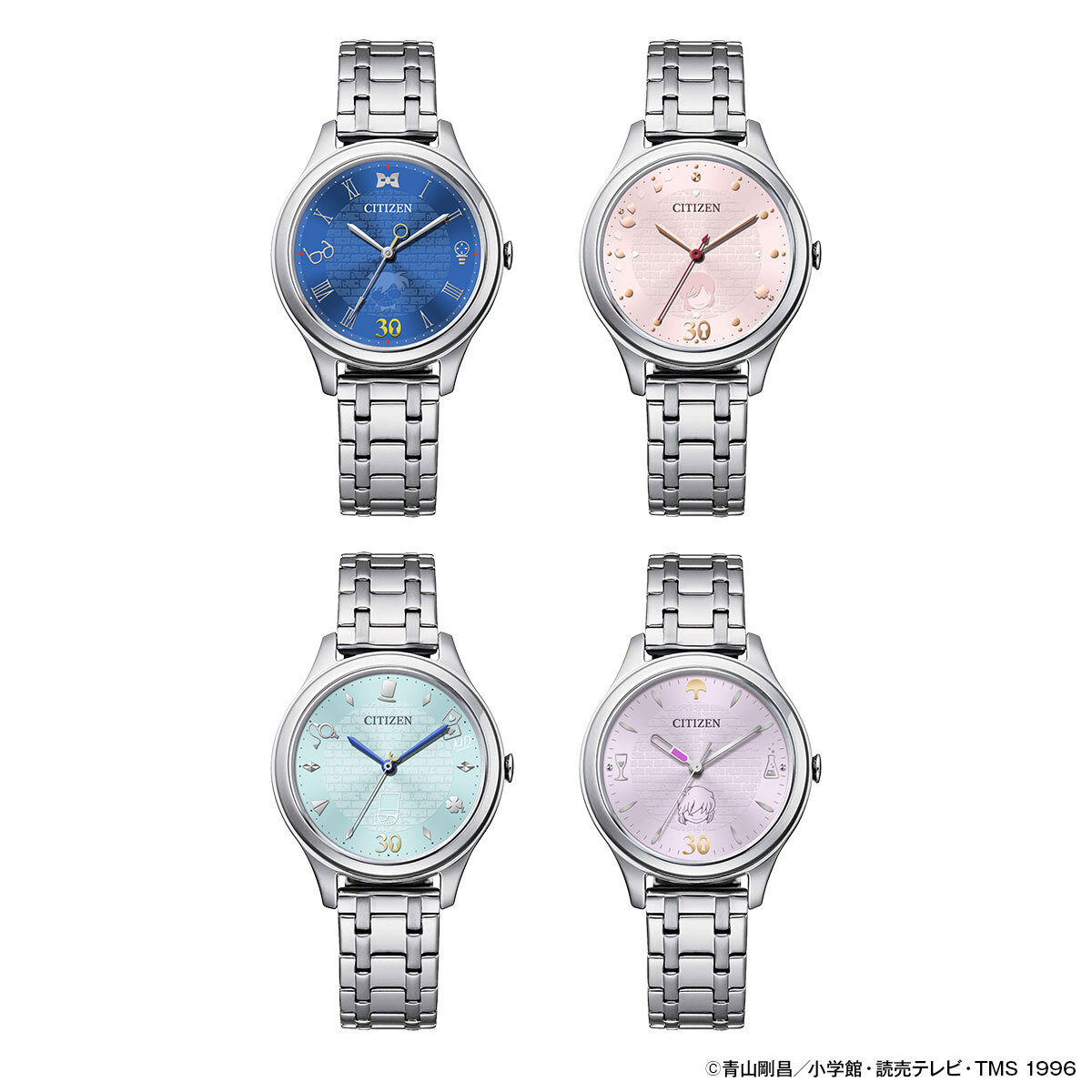 1996年にTVアニメがスタートして以来、多くのファンを虜にしてきた『名探偵コナン』。その記念すべき30周年を祝し、江戸川コナン、毛利蘭、怪盗キッド、灰原哀が、シチズンとコラボした限定ウオッチが登場!