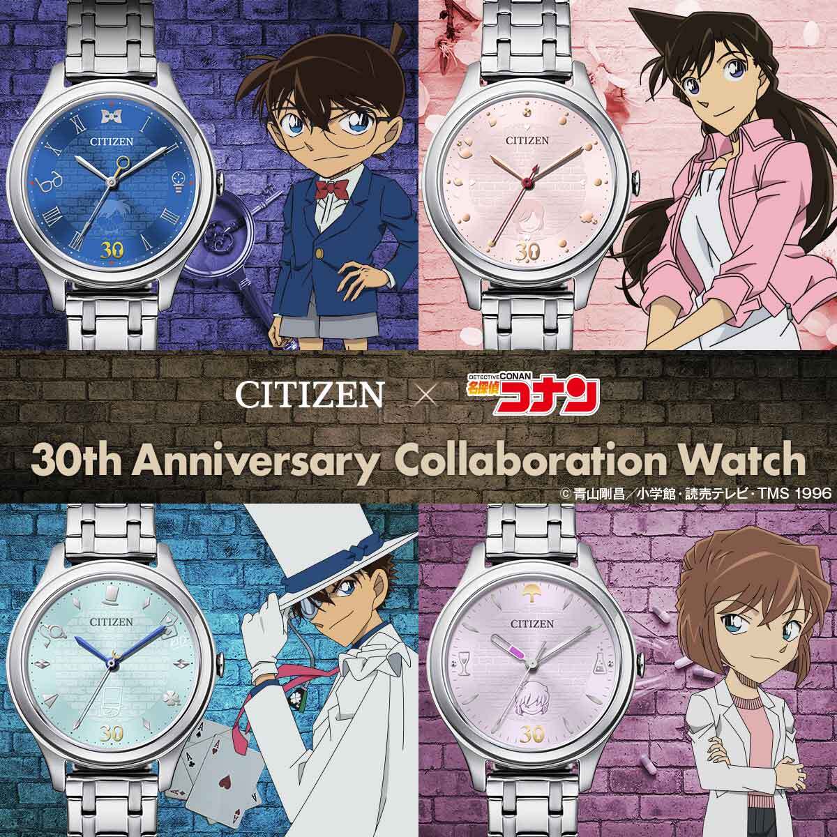 シチズン × 名探偵コナン TVアニメ30周年記念コラボウオッチ 江戸川コナン・毛利蘭・怪盗キッド・灰原哀の4モデルで登場