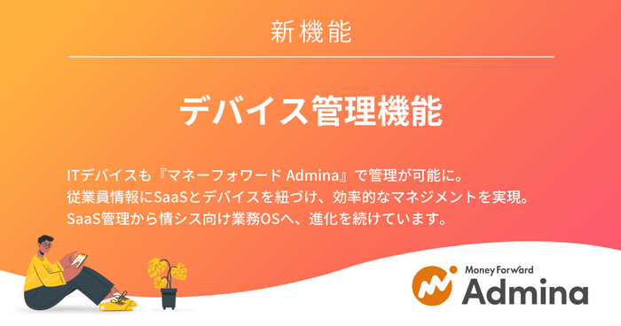 マネーフォワードi株式会社(以下「当社」)は、『マネーフォワード Admina』において、ITデバイスを管理できる「デバイス管理機能」の提供を開始します。