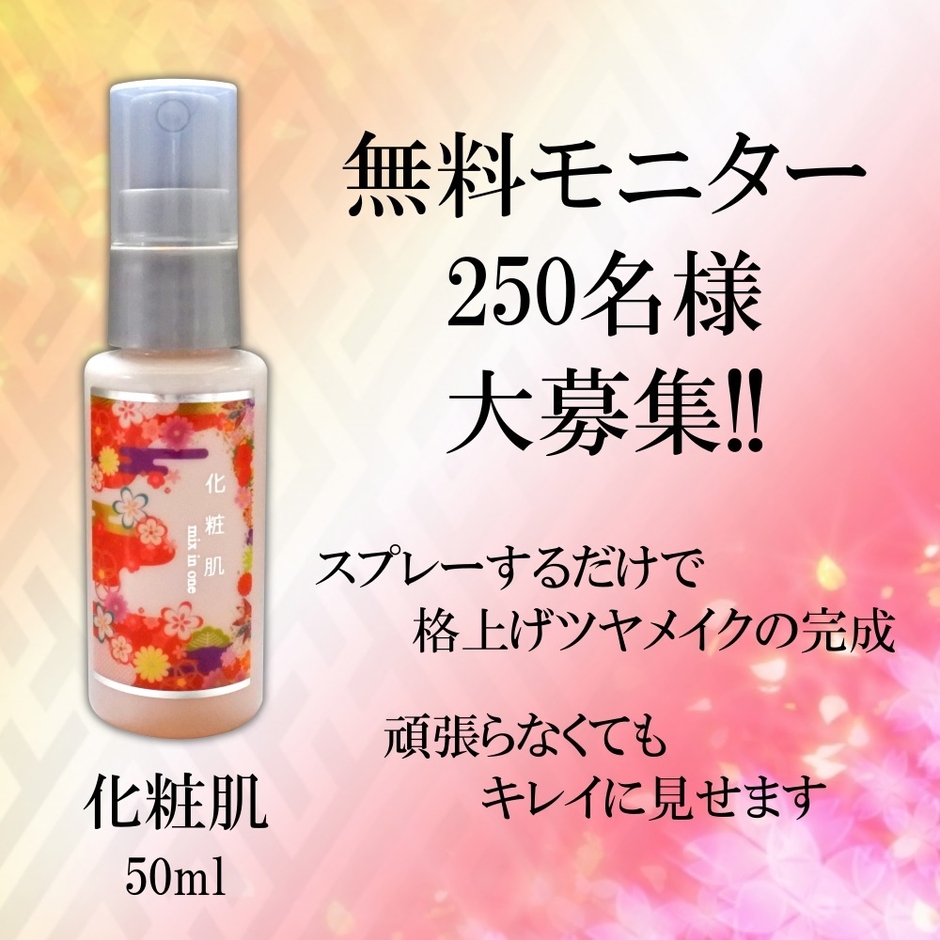 頑張らなくてもキレイに見せる「化粧肌」モニター募集! メイク後スプレーするだけ 気になる毛穴・目元を 自然にカバーし瞬間格上げツヤメイクの完成