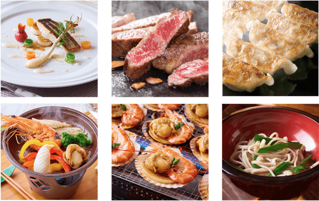 ◆鬼怒川観光ホテル:お肉料理はライブキッチンから焼きたて熱々をご提供するステーキやさっぱりとした美味しさの「冷製おろし豚しゃぶ」を。ご当地グルメ・宇都宮餃子、栃木県産のにらを使った「にら蕎麦」など、旅の想い出になる美味しさもご用意してお待ちしております。