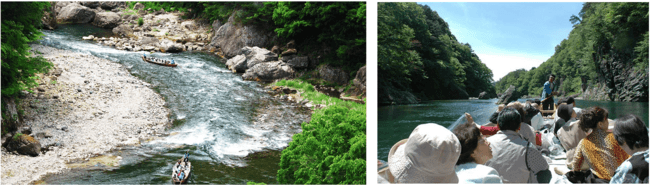◆奇岩が両側から迫る鬼怒川の渓流を約40分かけて下るライン下り。水面が近く涼を感じることができる夏にぴったりのアクティビティです。船頭さんの巧みな櫂さばきによる川下りはスリルもたっぷり。