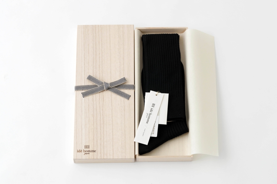 中国で高級カシミヤの輸出量No.1を誇る「CONSINEE(コンサイニー)」。その最高クラスのカシミヤ梳毛糸を世界で初めて靴下にした、ide hommeを代表する靴下です。ぴたっとしたフィット感よりも、カシミヤ本来の軽やかで柔らかな履き心地を大切にしました。足元に自信と品格が生まれるロングホーズです。おしゃれにこだわる方への贈り物には、桐箱入りギフトソックスが好評です。