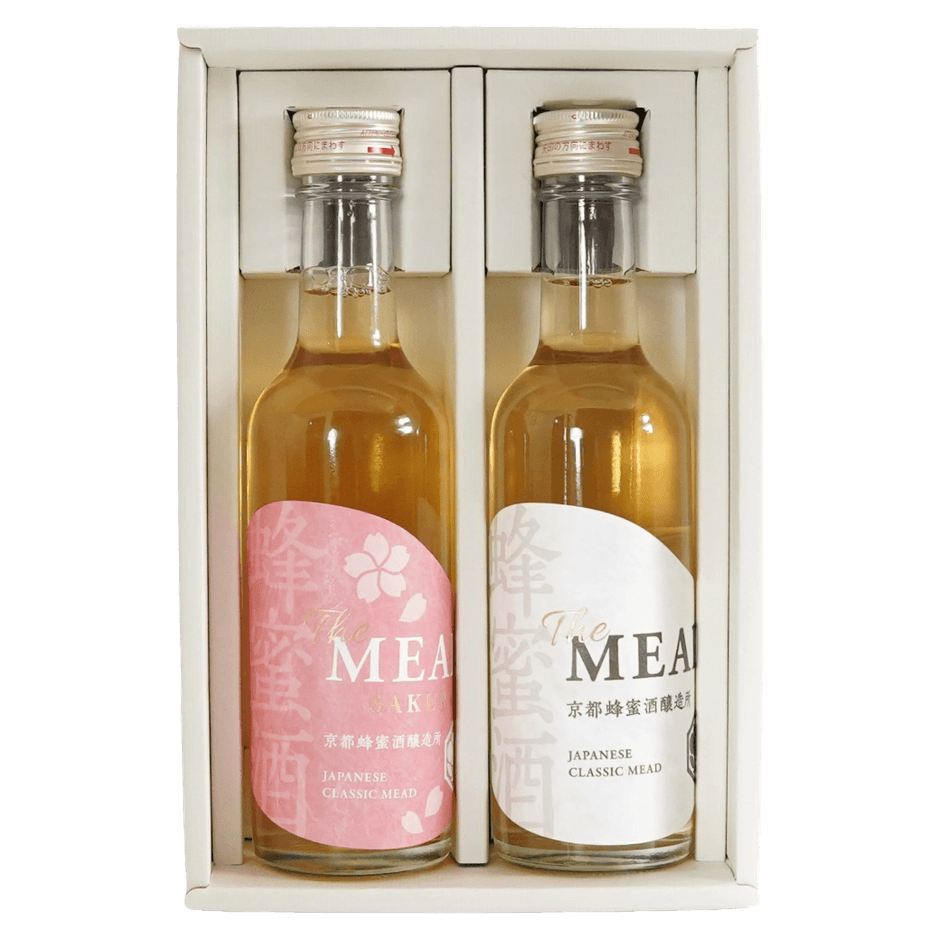京都蜂蜜酒醸造所が国産蜂蜜で造った蜂蜜のお酒「The MEAD(250ml)」と「The MEAD さくら(250ml)」を組み合わせた紅白仕様のギフトセット。