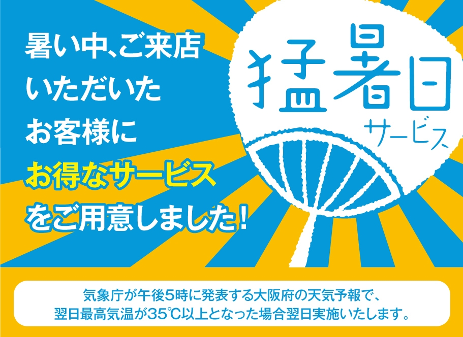 天気予報を要チェック! 猛暑日サービス実施します