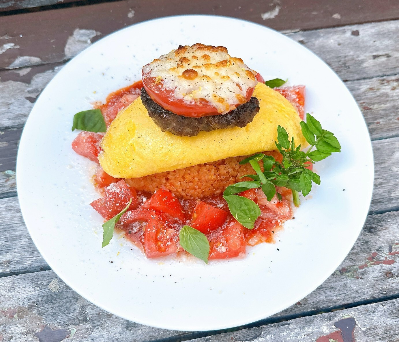 トマトの2種調理とバジルのオムバーグ