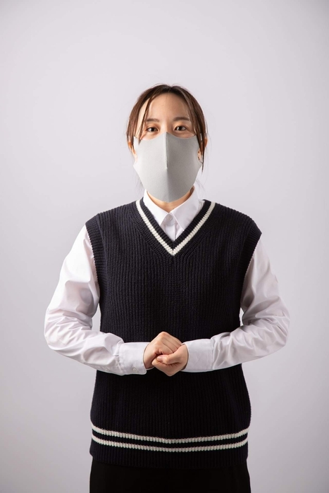 大きく口を動かしてもストレスのないマスク。マウスシールドと比べ飛沫を防ぐ効果が見込めます。