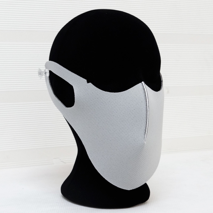 また100回洗濯しても抗菌効果が持続する抗菌生地を使用しており、コロナ対策ができる。また、鼻・口部分を密着して覆い、空気中の上部からの飛沫対策が可能。当社素材である「シリカクリン」をマスク裏側に使用しており、こもりやすい湿気やニオイも除去でき、メガネの曇りを防止できます。