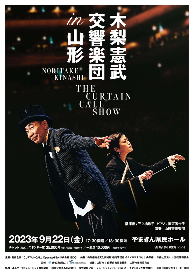 クラシック専門ストリーミング配信プラットフォーム「CURTAIN CALL」を運営する株式会社12DO(所在地:東京都大田区、代表取締役社長:酒井光一)は、「木梨憲武 交響楽団 in 山形 THE CURTAIN CALL SHOW」をやまぎん県民ホールにて2023年9月22日(金)に開催いたします。