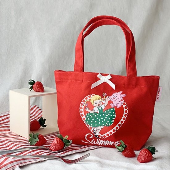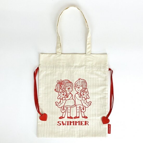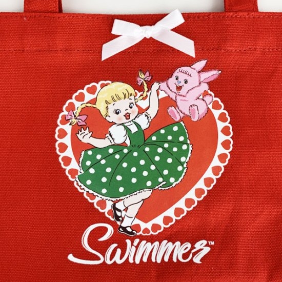 SWIMMERのオトナコレクションから、キュートな赤いランチトートバッグのご紹介です。復活したスイマーの代表的なデザインとしてもお馴染みで、いたるところにSWIMMERの魅力が散りばめられています。