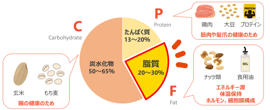 私たちのカラダづくりの基本として、PFCバランス(P=たんぱく質、F=脂質、C=炭水化物)があり、たんぱく質13~20%、脂質20~30%、炭水化物50~65%が栄養バランスの黄金比とされています。そのため、特定の食材を減らしたり、置き換えたりすることはバランスが崩れる原因となり、エネルギー不足に陥ってしまうことも。その結果、お腹が空きやすくなってしまい、食欲を我慢できず、つい食べてしまう…というような逆効果につながりかねません。