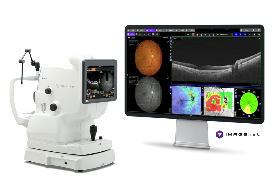 株式会社トプコン(本社:東京都板橋区、代表取締役社長:江藤 隆志)の子会社である株式会社トプコンメディカルジャパン(本社:東京都板橋区、代表取締役社長:冨岡 靖)は、医療機関向けに、三次元眼底画像撮影装置 DRI OCT(R) Triton2(以下 Triton2)および、眼科データ管理システムIMAGEnet(R)7(以下 IMAGEnet7)を発売しました。