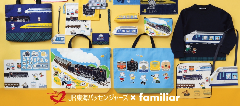 familiar×JR東海パッセンジャーズ 鉄道開業150周年記念 鉄道コラボ第2弾 最速蒸気機関車で知られる「C62形式」や 「ドクターイエロー」など歴代の鉄道車両10種を デザインしたアイテムの販売や体験型イベントを初開催!