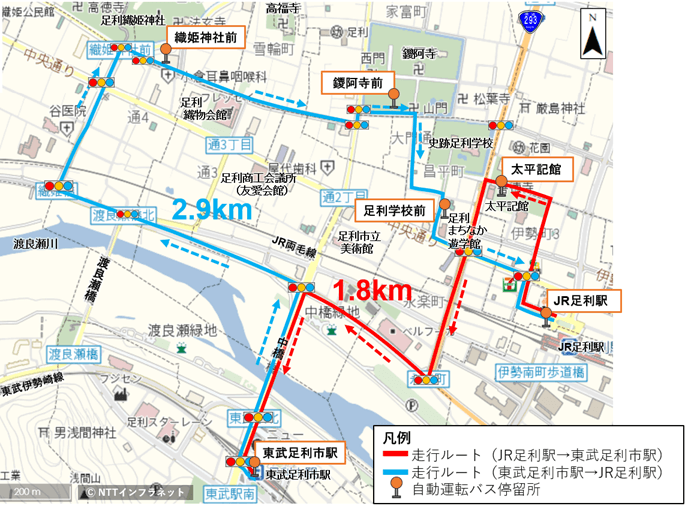 ■走行ルート:JR足利駅および東武足利市駅を起終点に、観光施設・商業施設を周遊するルート