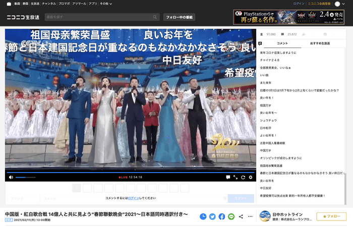 旧正月を祝おう!中国版紅白歌合戦『春晩』を1月31日(月) 全編生中継!ニコニコ動画日中ホットラインチャンネルにて放送