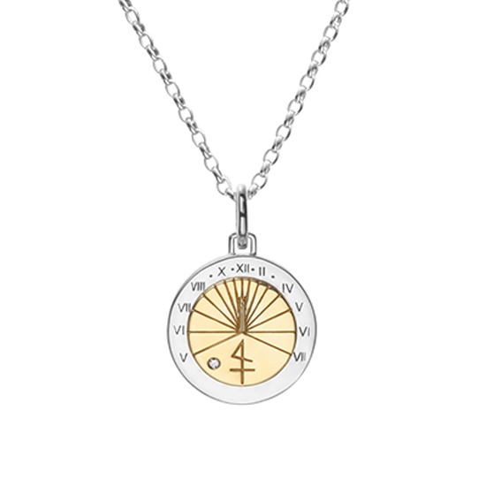 紀元前3000年、エジプトで使われていたといわれる、“影”を利用した時計、SUN DIAL(日時計)をモチーフにしたペンダントトップ。文字盤に落ちる影の位置によって時を知ることができます。悠久の時を感じるロマンあふれるアイテムです。チェーンを通したときに、動きにくい特殊なバチカンを使用した新モデル。