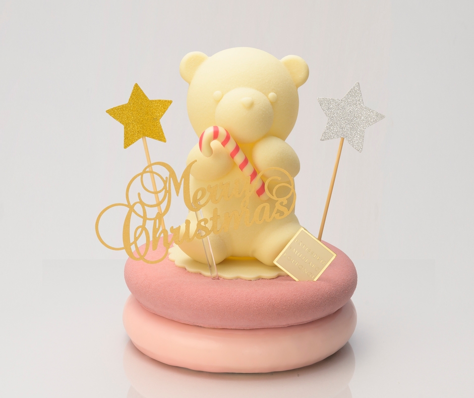 パティシエが一つひとつ手作りで仕上げた、くまさんのチョコレートをのせたベリーとフロマージュのケーキ。チェリーやフランボワーズなど4種類の赤いフルーツを組み合わせたミックスベリーのムースに、濃厚な味わいのフロマージュムースを重ねました。